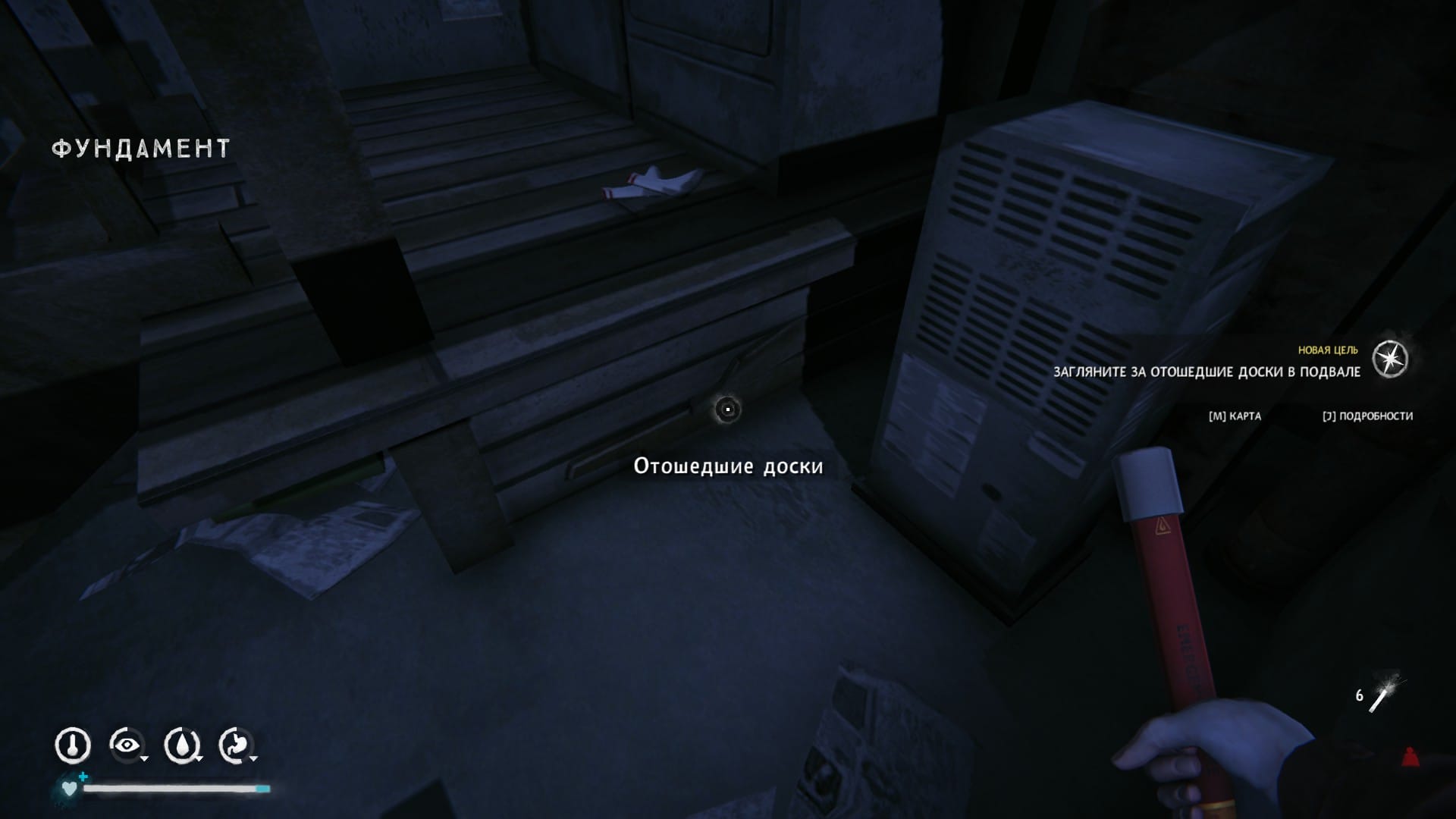 На небольшой равнине стоят разрушенные дома. Войдите в подвал следующего жилища: