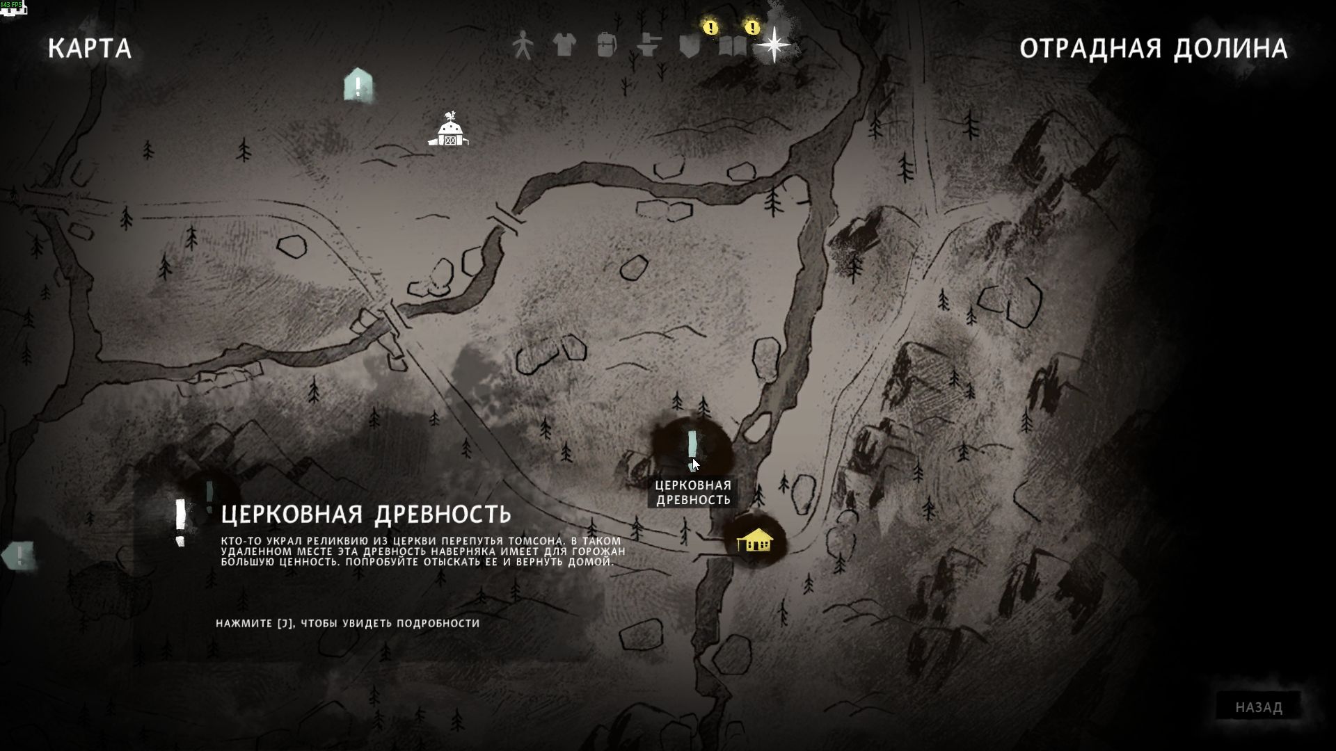 В результате прочтения двух записок, на карте появится отметка с местоположением церковной древности.