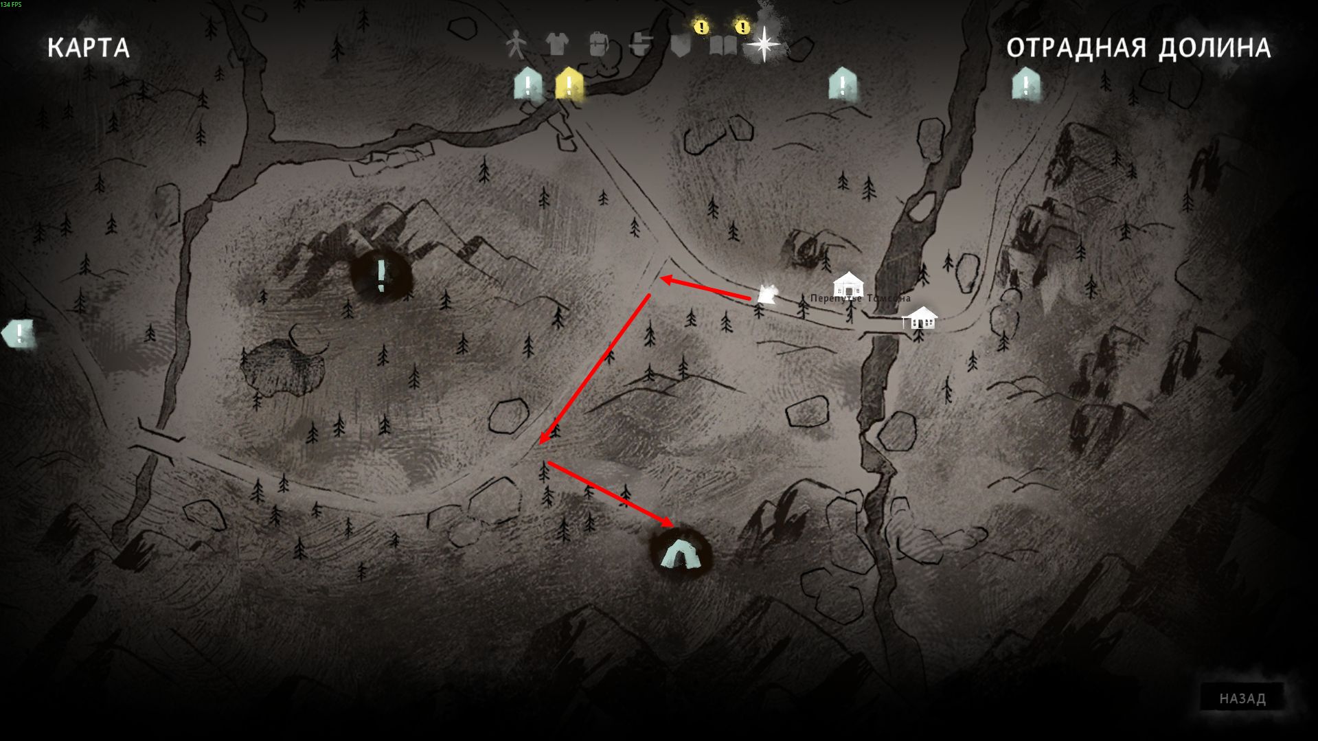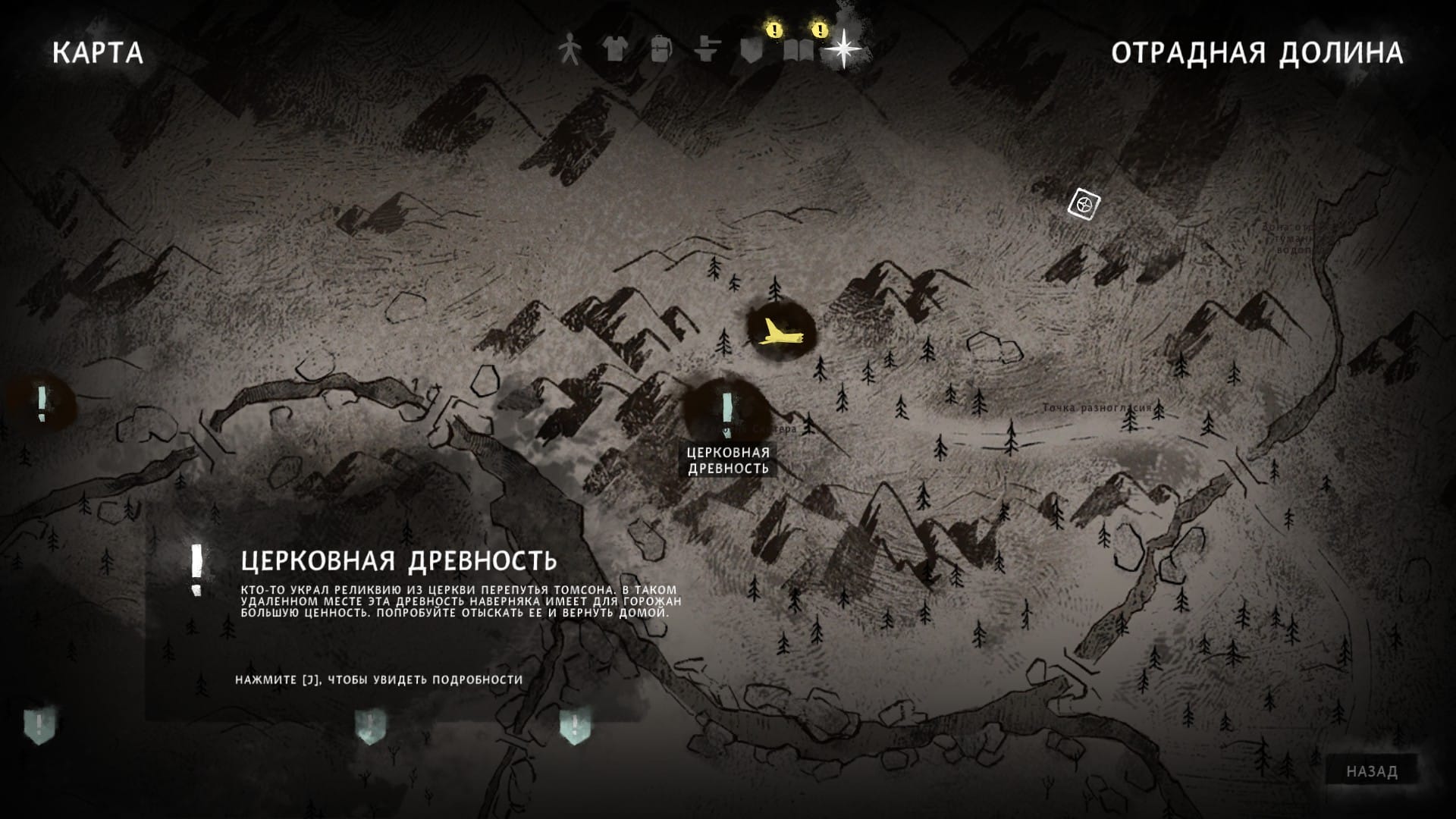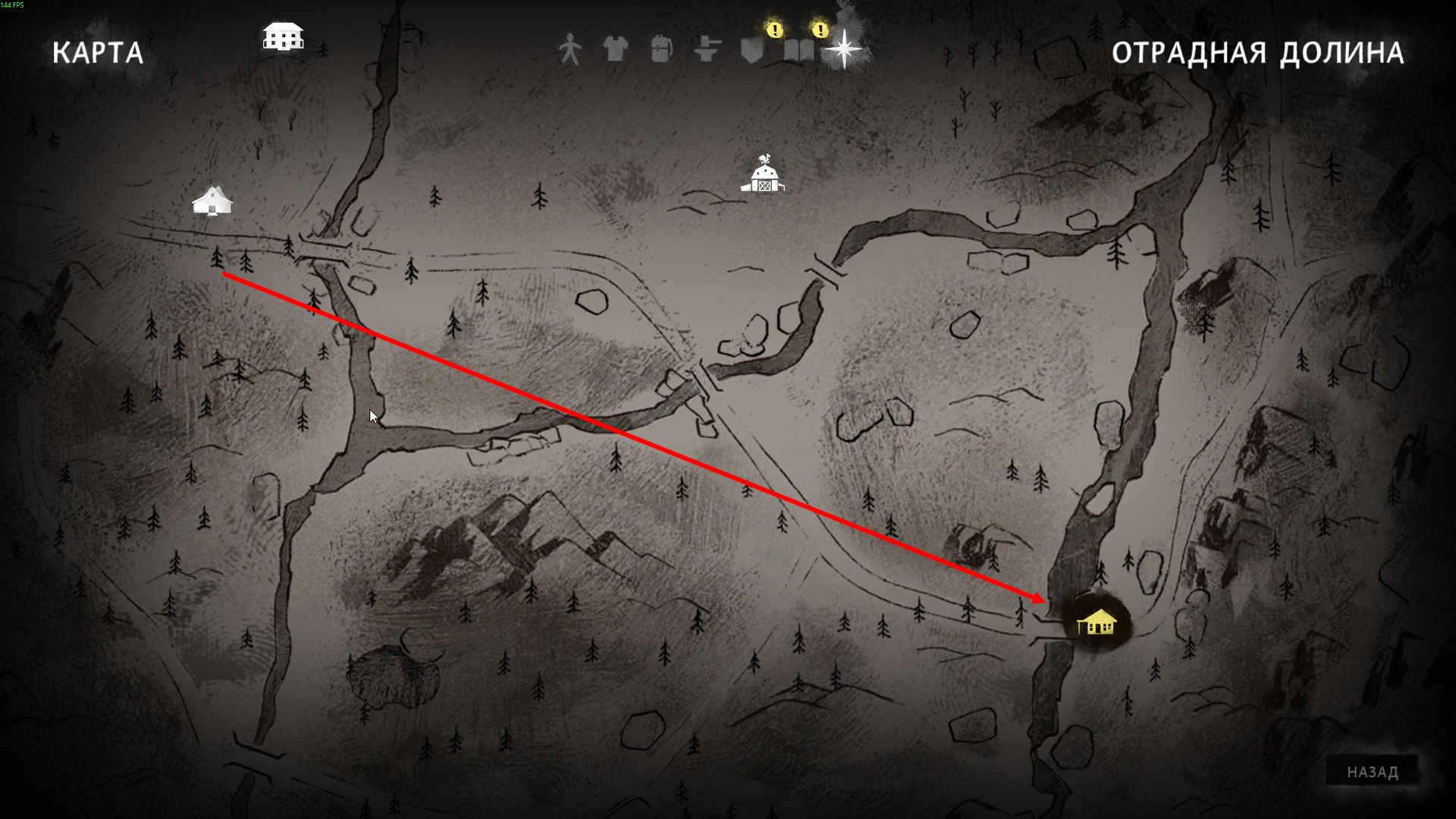 Мы посетим ее, когда отправимся изучать упавший самолет. Идем просто по дороге. По пути можем заглянуть в дом Уклониста, связанный с пропажей Церковной древности. Хижина находится под горами, срезать или обойти там никак не получится, поэтому посетив его, все равно придется вернуться назад на дорогу.
