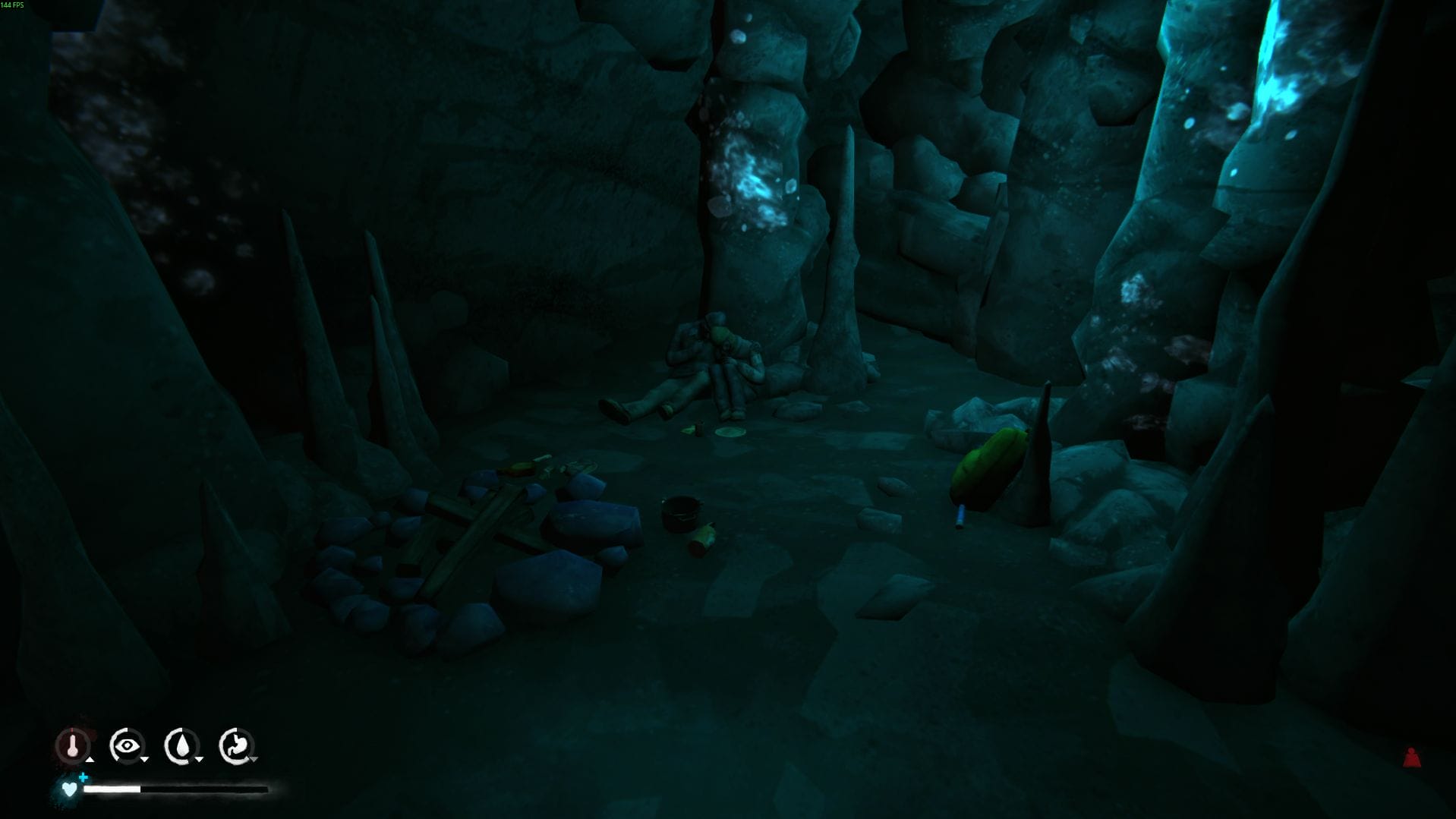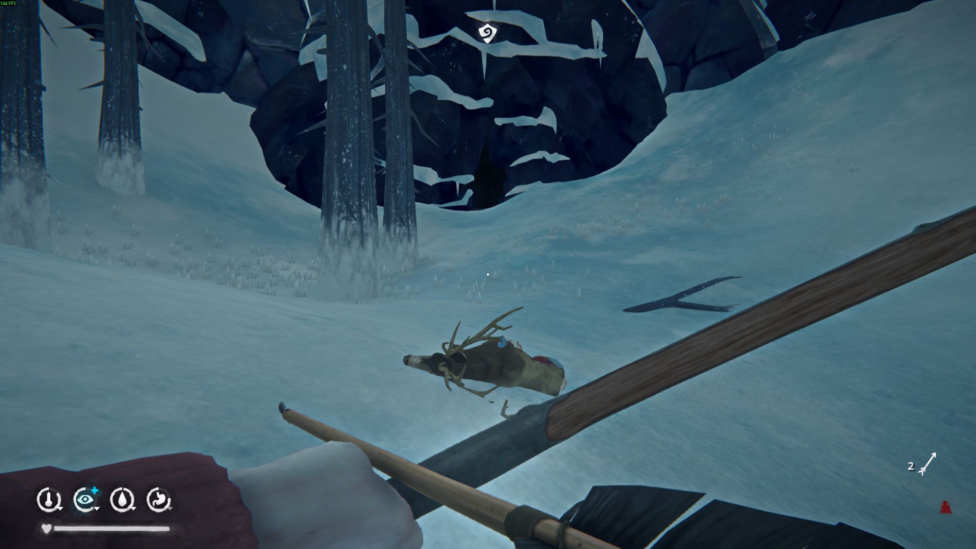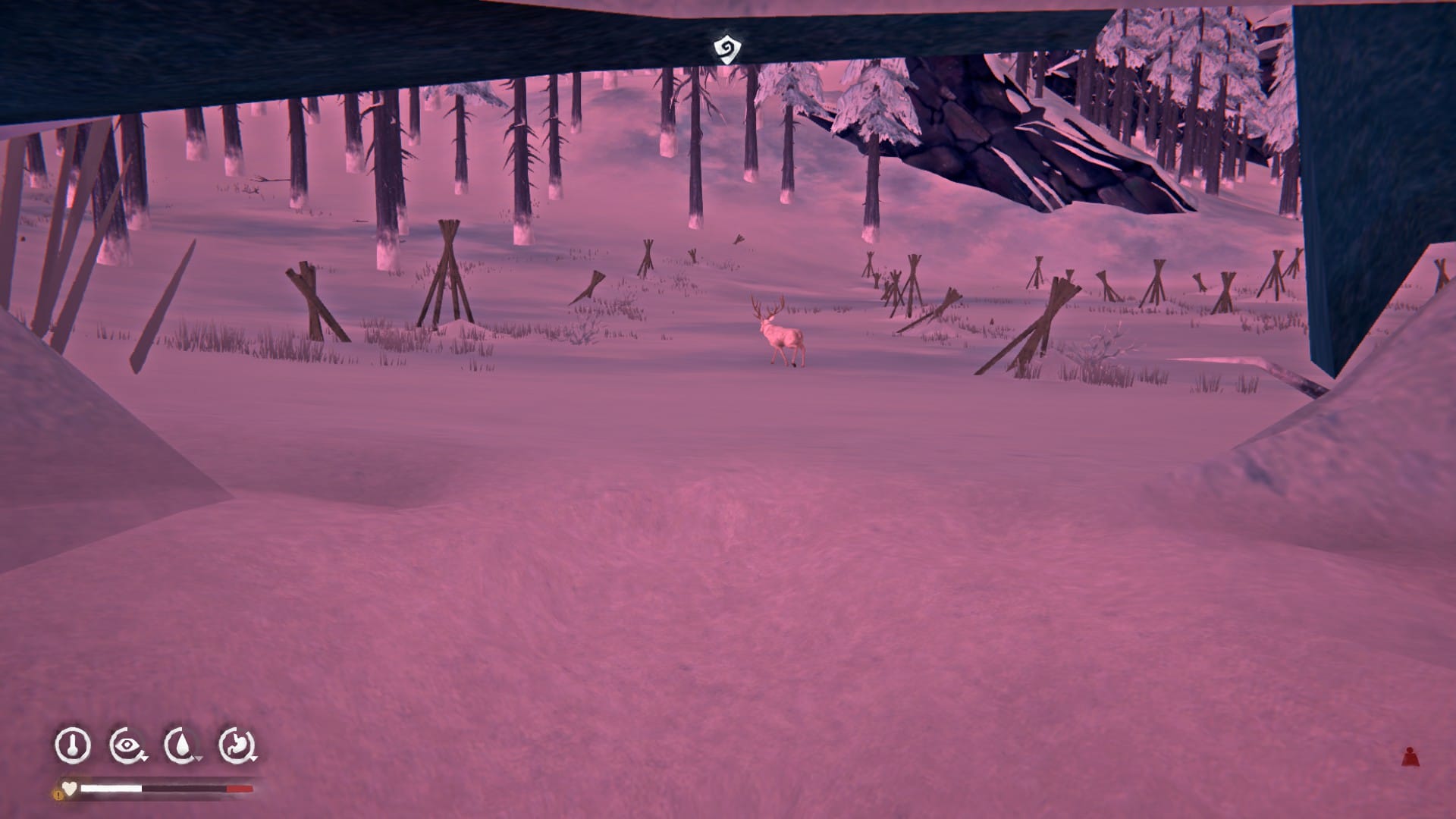 Возле пещеры лежит мертвый олень — забираем шкуру с кишками. Они пригодятся для создания теплой обуви или штанов.