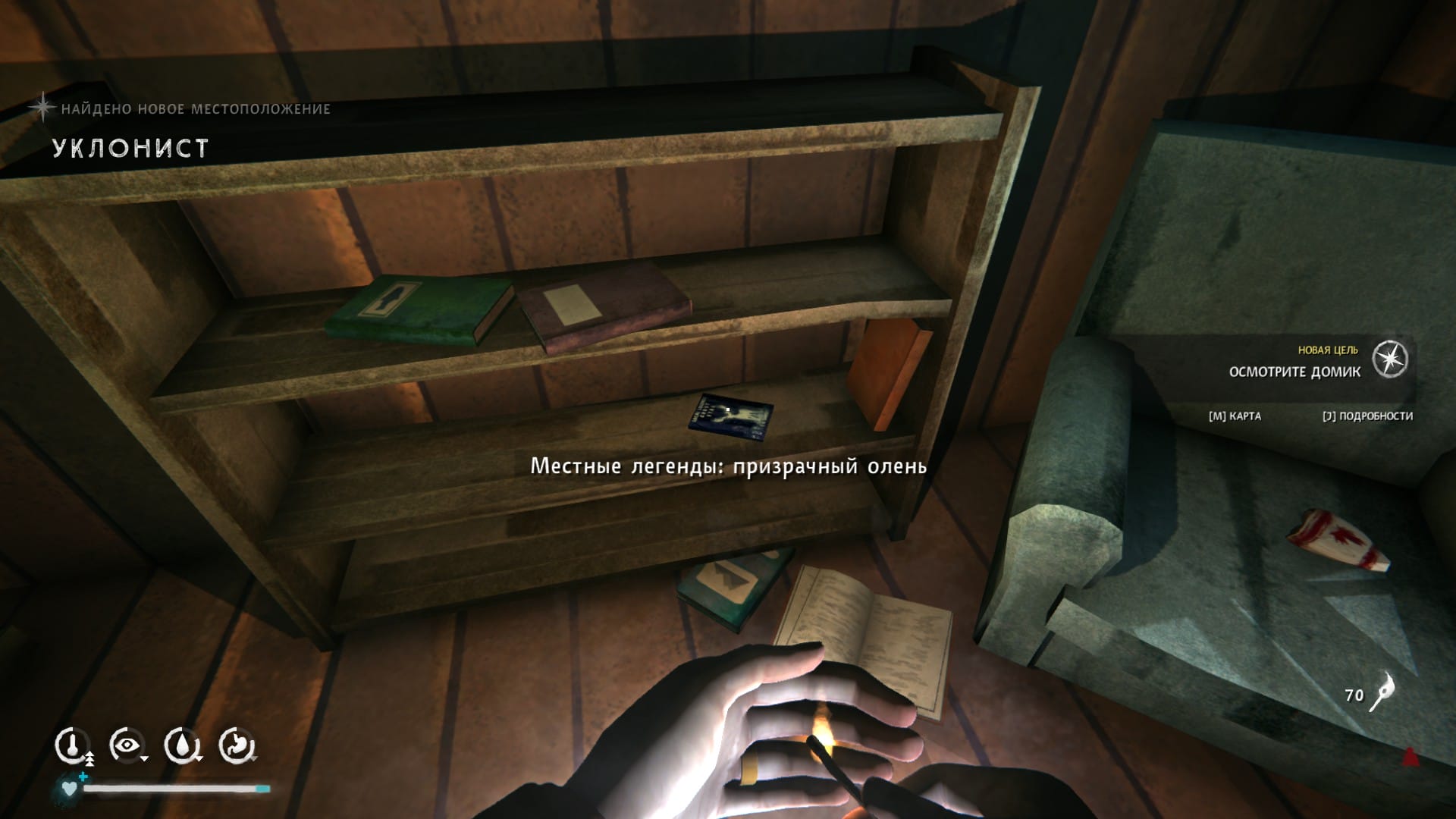 Тогда на карте будет метка на доме Уклониста, где и лежит книжка с призрачным оленем.