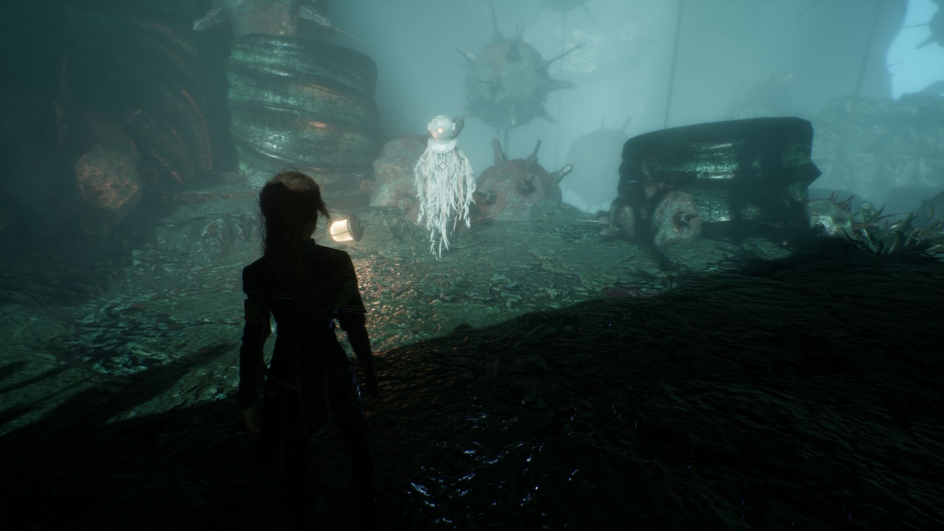 Выбрав «Изучить», ваши герои заметят, что Деминер не агрессивен и у него нет подводной мины — стандартного для этих мобов вооружения. Чтобы завершить задание, нужно найти целую мину и вернуть ее. Она находится в той же зоне.