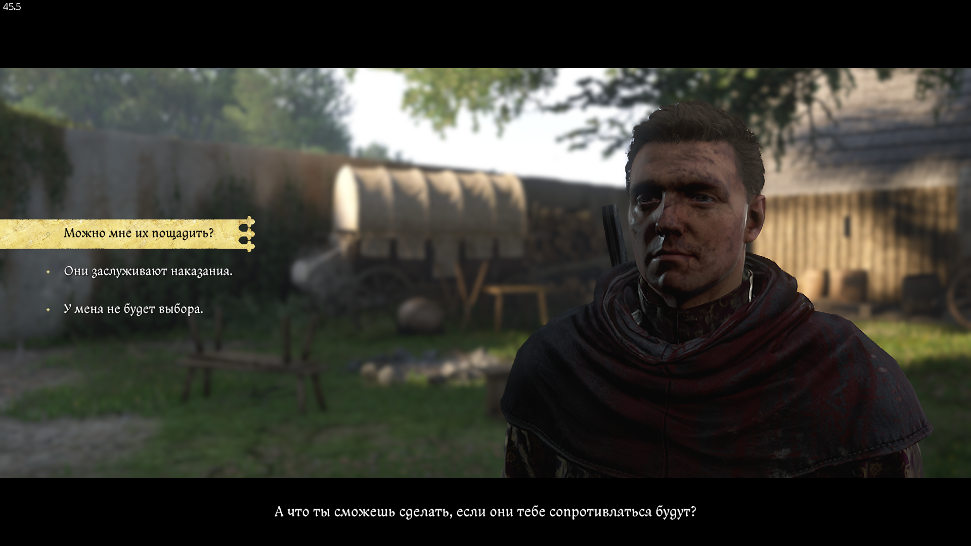 Далее будет два выбора — сразу выйти к углежогам и попросить привести нас к лидеру, либо под покровом ночи пробраться в лагерь и тихо устранить Карела.