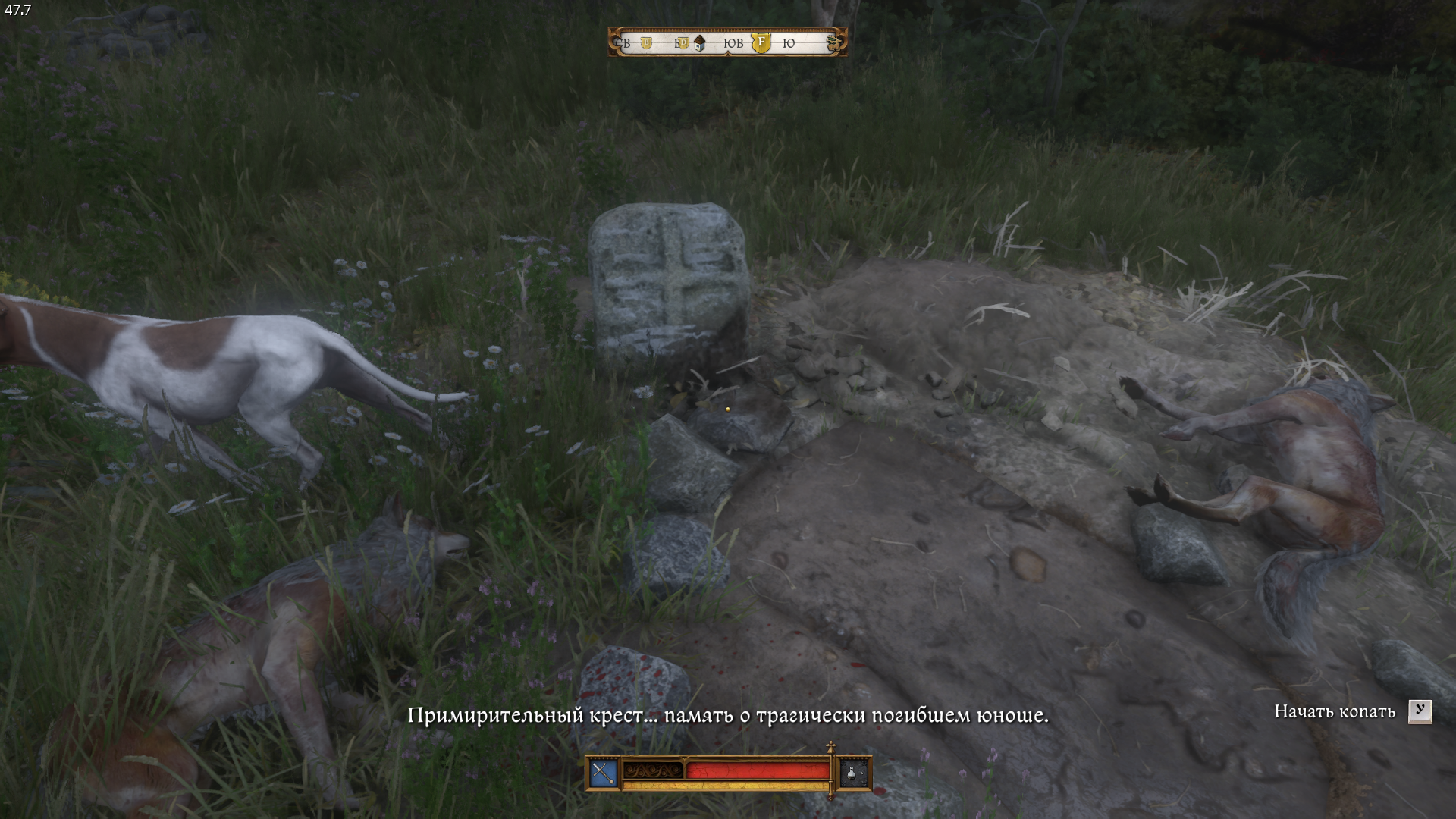 - Осмотрите покосившийся крест в лесу (купите лопату)