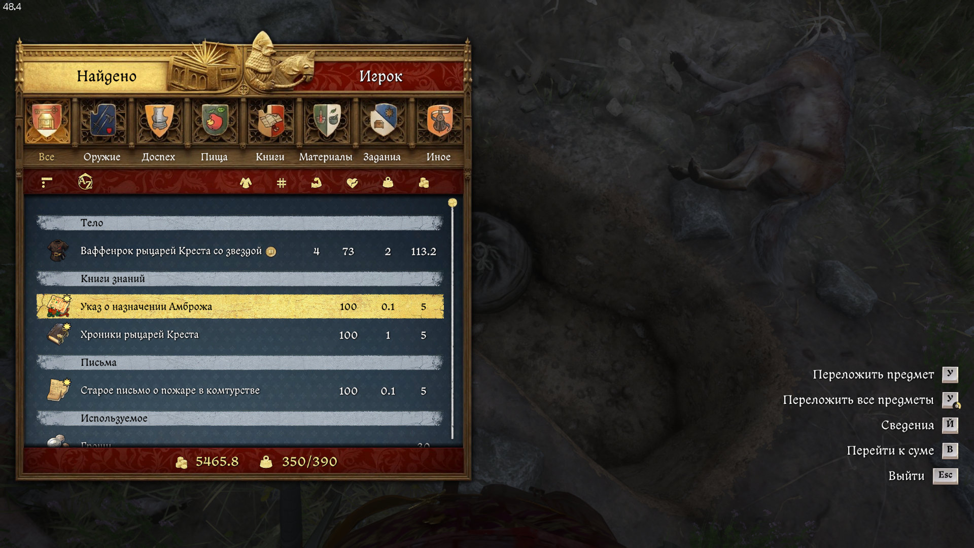 Внутри лежит мешок с ценными предметами. Там же будет лежать книга «Хроники рыцарей креста» — прочитайте, чтобы получить опыт.