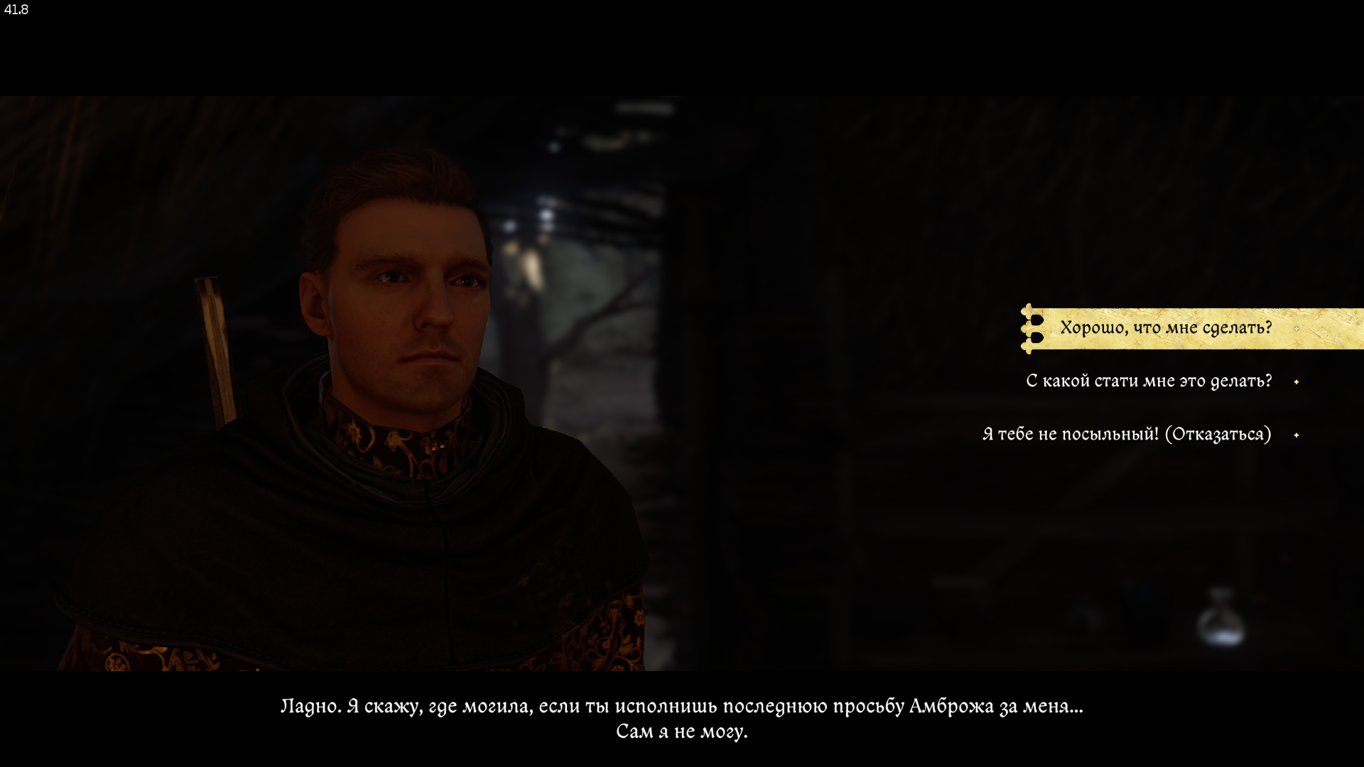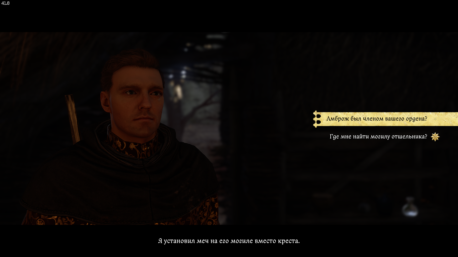 После станет доступна реплика — «Признавайся!». Мужик признается, что он самозванец, а настоящий отшельник Амброж, который был его друг, умер от старости. Спрашиваем подробности смерти и другие подробности об отшельнике.