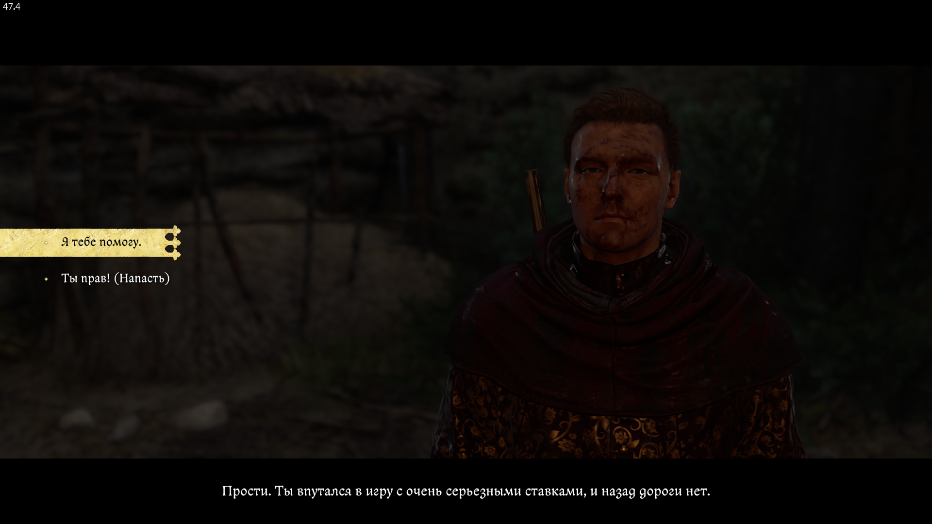 Затем появится выбор — чью сторону принять. Если хотите спасти отшельника, то говорим — «Я тебе помогу».