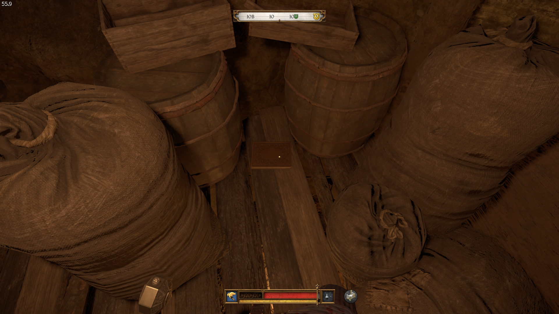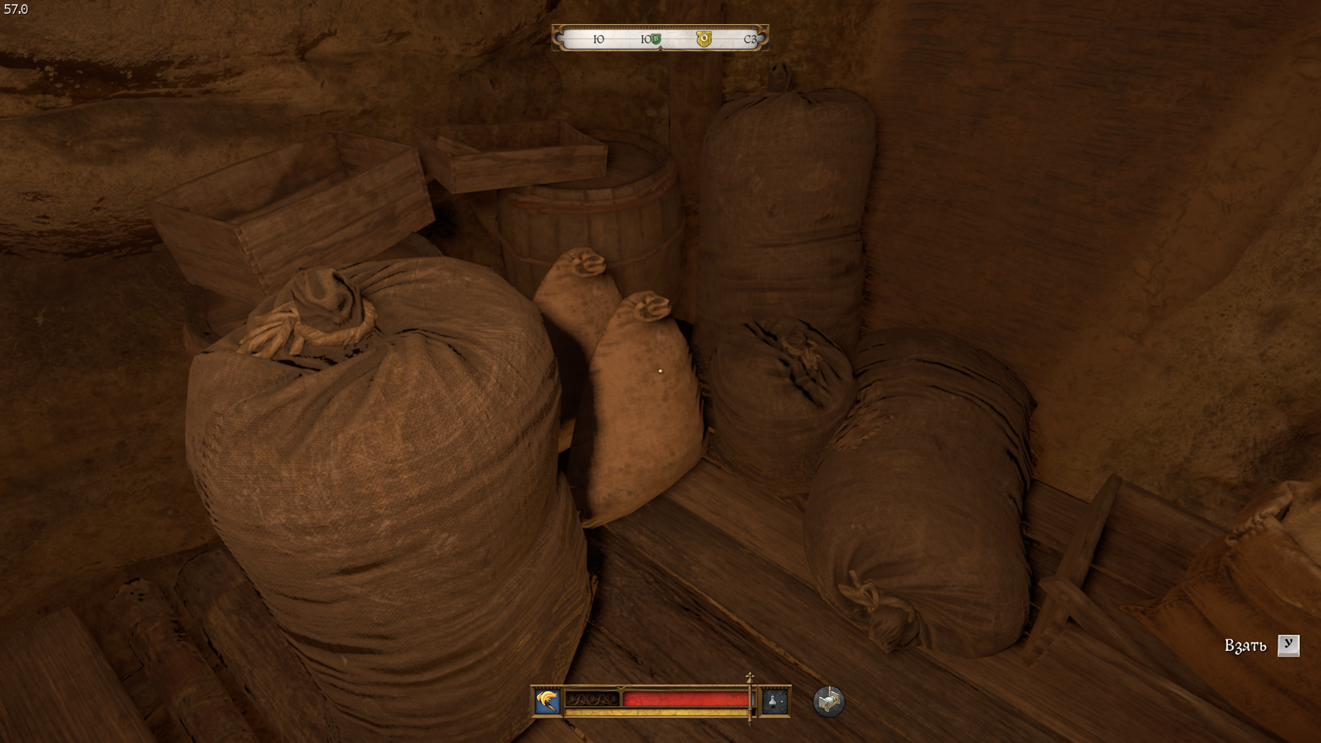 Если во время сражения с рыцарями Конрад умрет или вы просто решили его не поддерживать, то найти могилу отшельника Амброжа можно и без него. Пройдите в хижину, поднимитесь на второй этаж и обратите внимание на заваленный угол. Там выделяется три белых мешка. Переместите их в другое место.