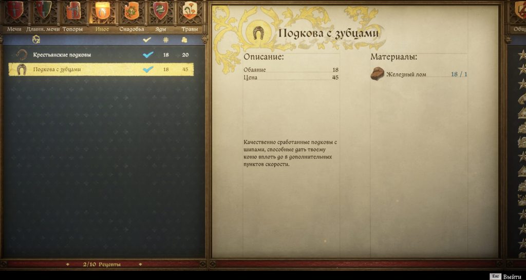 При успешной проверке Миколай поделится чертежом волшебных подков в KC 2. Теперь мы можем их скрафтить у кузнеца. Как скрафтить волшебные подковы — понадобится только 1 железный лом и терпение.