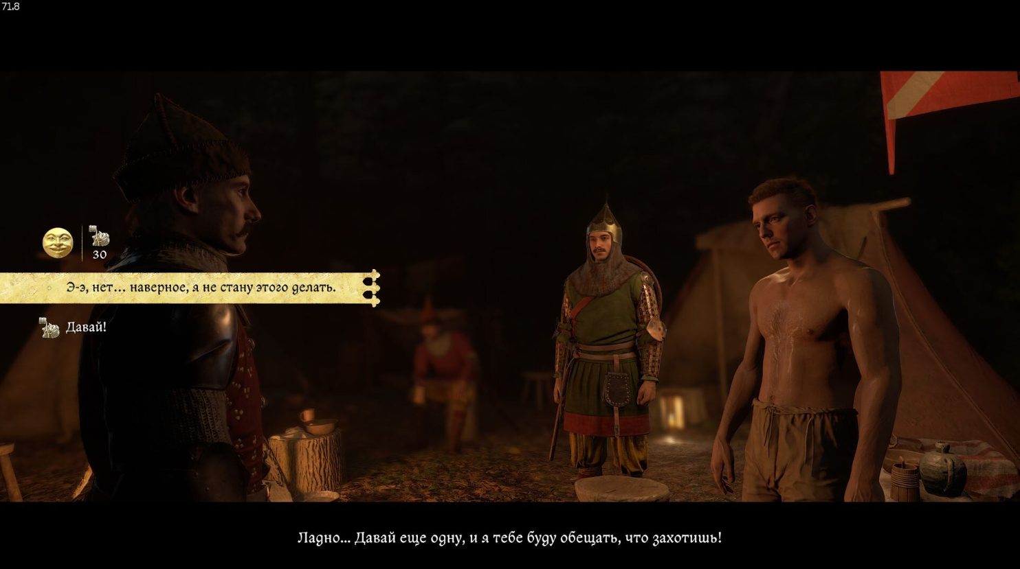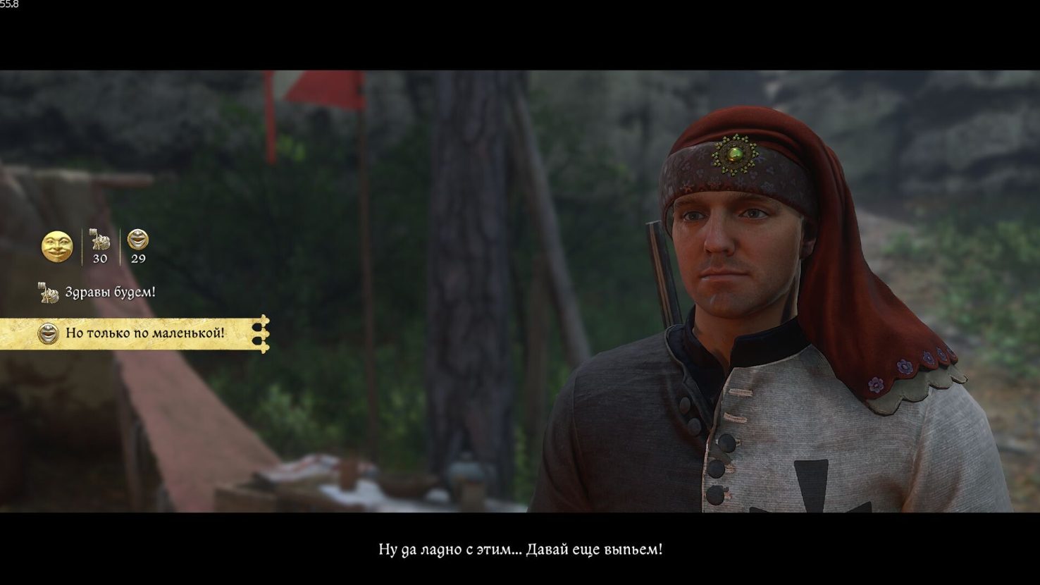 Вернувшись к Васко, он снова предложит выпить. Сначала выберите «Здравы будем!». Позже — «Но только по маленькой» (проверка). Оба варианта могут улучшить репутацию.