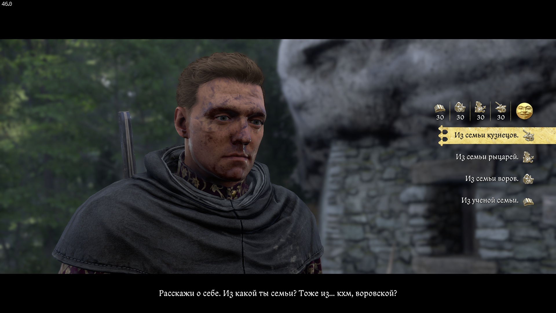 Бонка спросит где мы нашли собаку, а потом попросит рассказать о себе. Здесь выбираем — «Из семьи кузнеца».