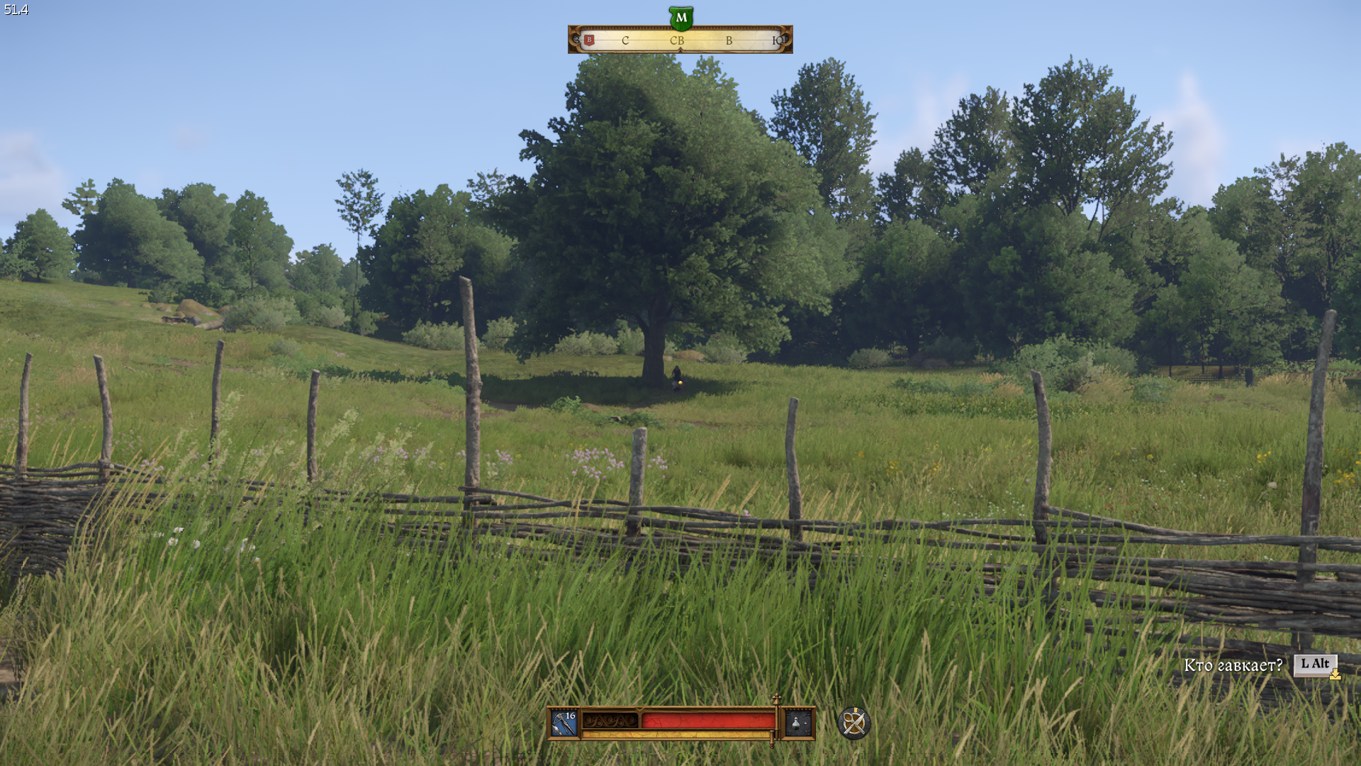 Появится область поисков. Вскоре услышите лай, нажмите Alt, чтобы Индро повернулся в сторону звуков. В результате выйдем к дереву, где встретим Бонку.