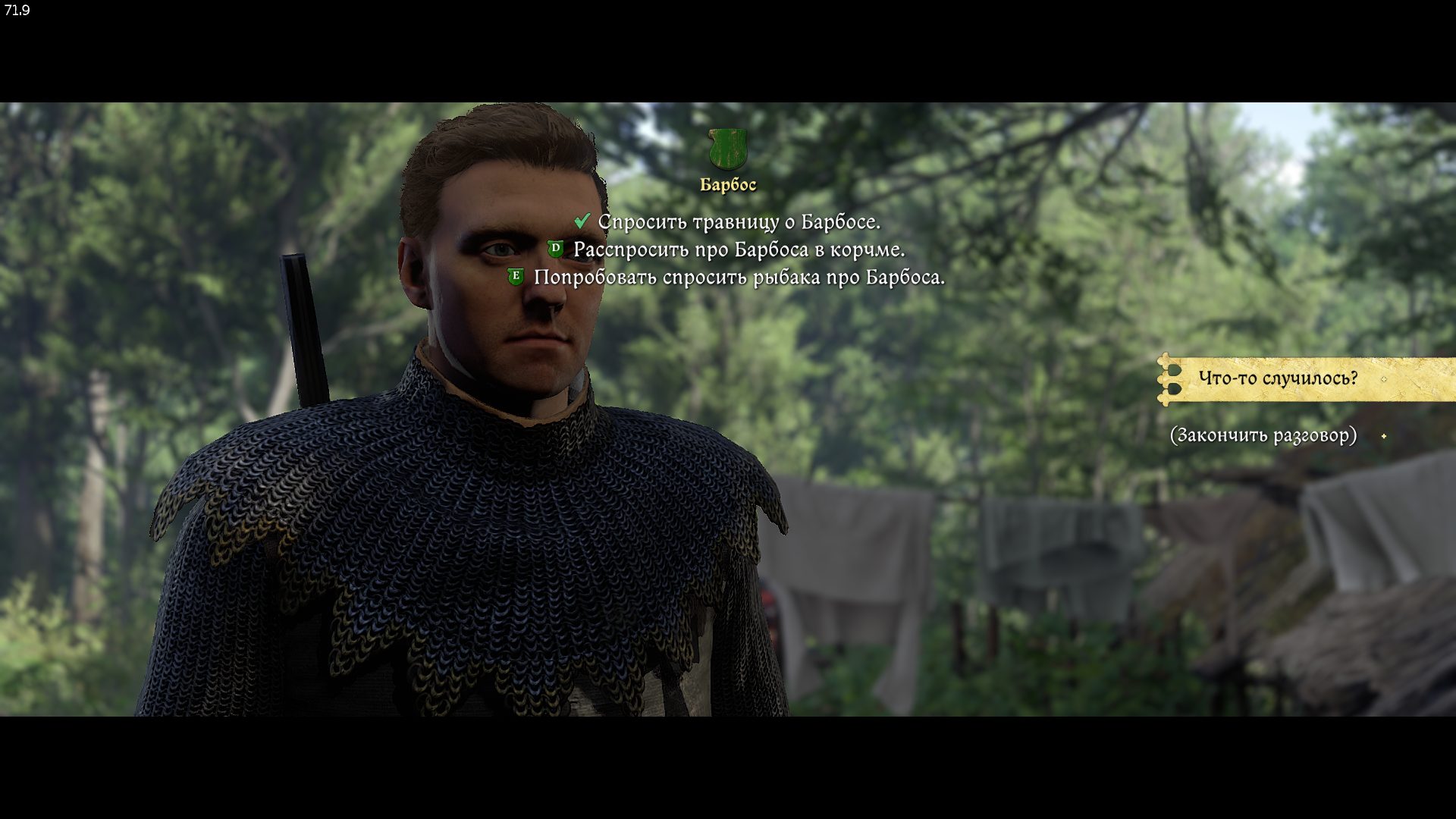 В ходе выполнения второстепенного квеста «Барбос» мы обратимся к травнице за помощью — возможно старушка видела нашего хвостатого друга. В разговоре буде заметно, что Божена чем о обеспокоена. Спросите у нее — «Что-то случилось?».