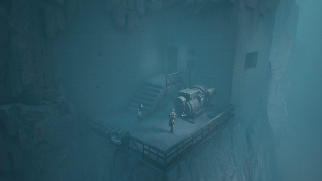 Когда доберетесь до бункера в скале, справа пройдите на балкон. Там нужно будет завести генератор, заодно сбросьте ящик.