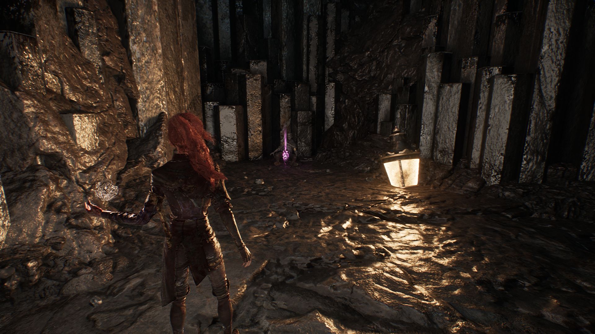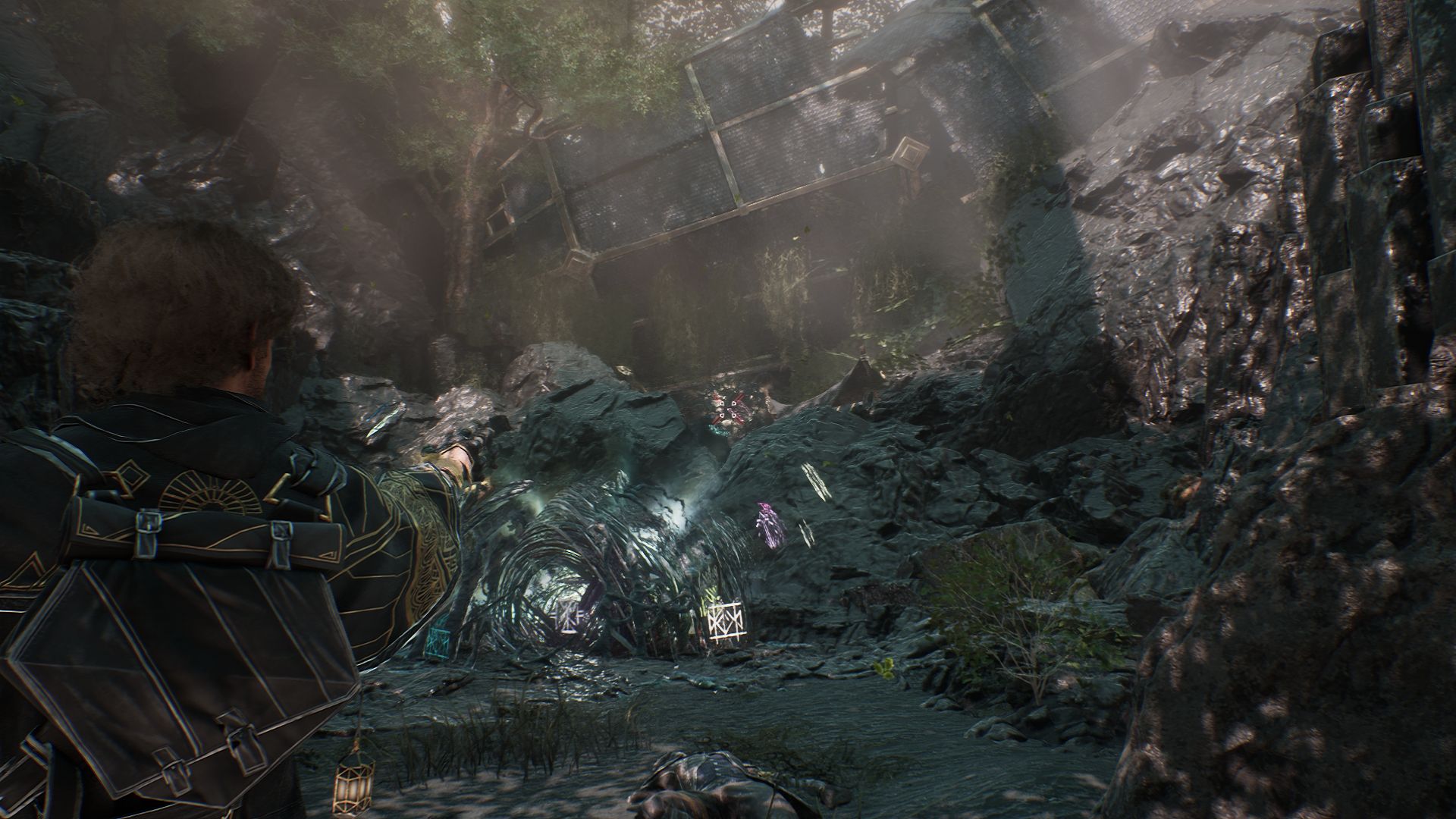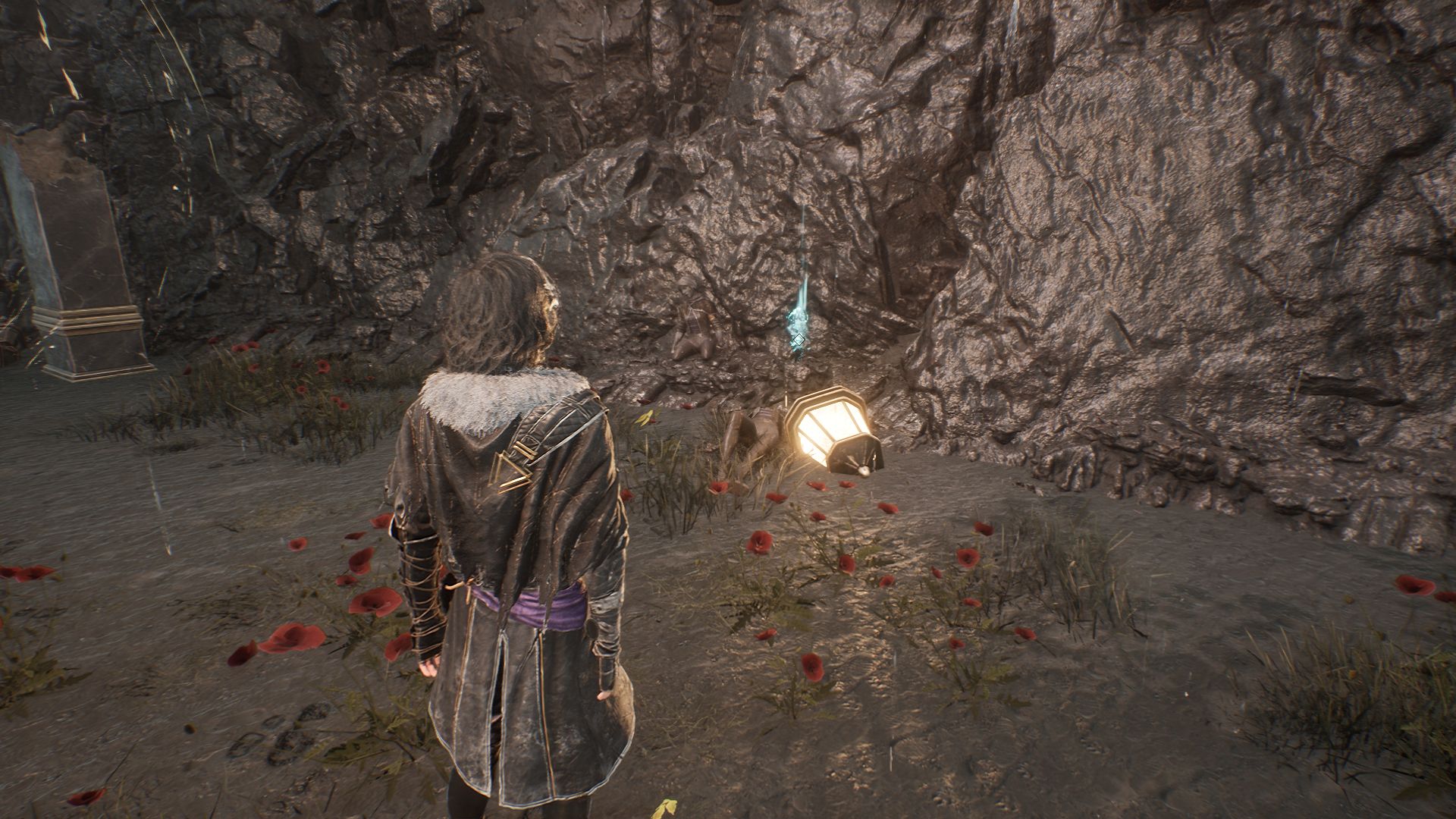 Спуститесь в пещеру и двигайтесь вперед, пока не доберетесь до веревки, ведущей вниз. После спуска увидите первый скальный кристалл слева от себя. Разберитесь с противником рядом и