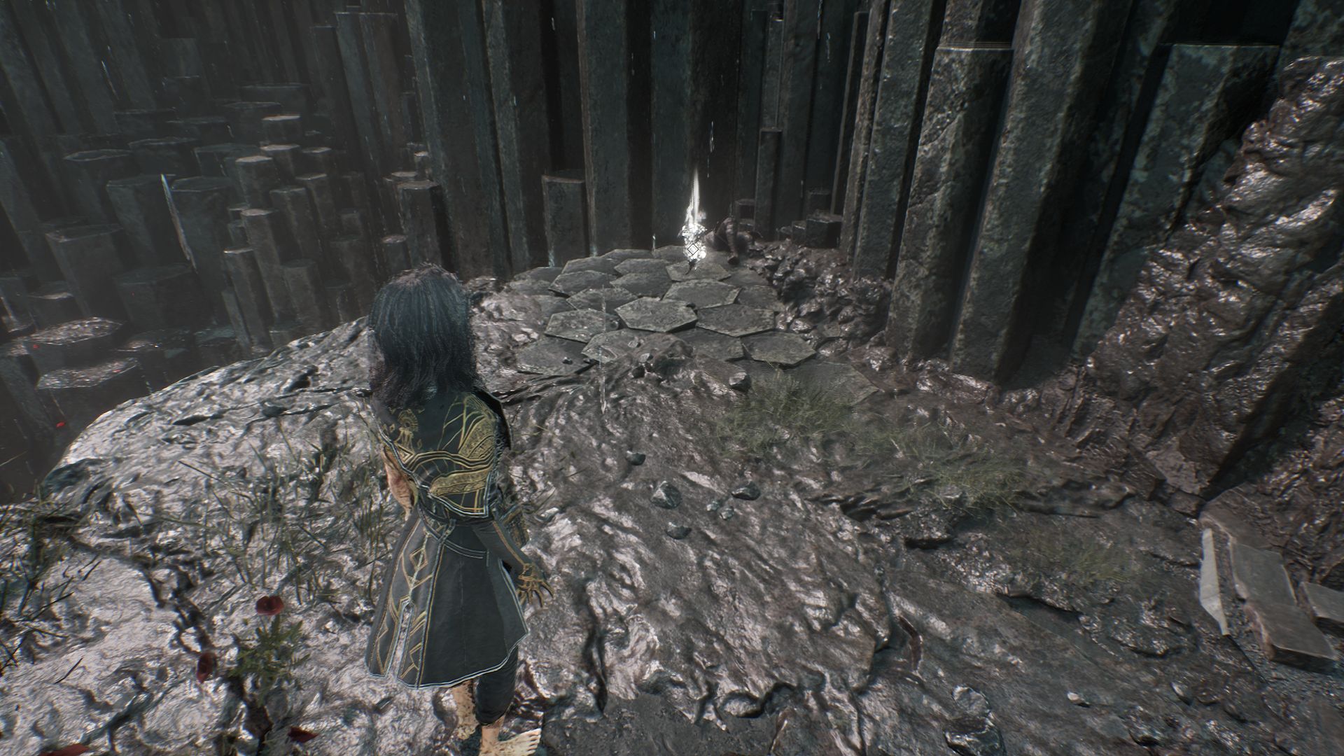 Если сделаете еще несколько шагов выше по тропе, то увидим второй светящийся кристалл для Шестиграна.