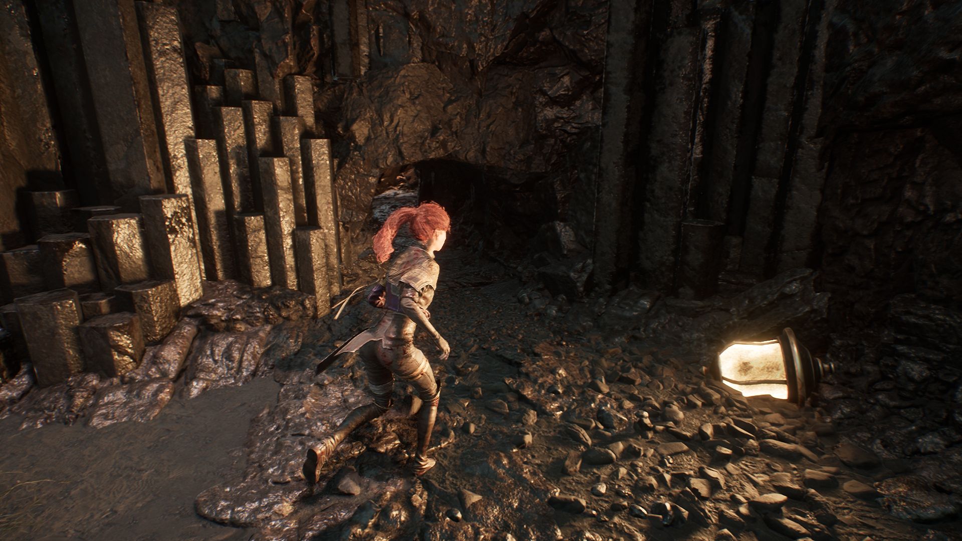 Забрав последний кристалл, обратите внимание, что здесь же будет еще одна веревка, ведущая вниз — на самый нижний уровень пещер. Сразу, как спуститесь поверните налево и у скалы заберите ретушь.