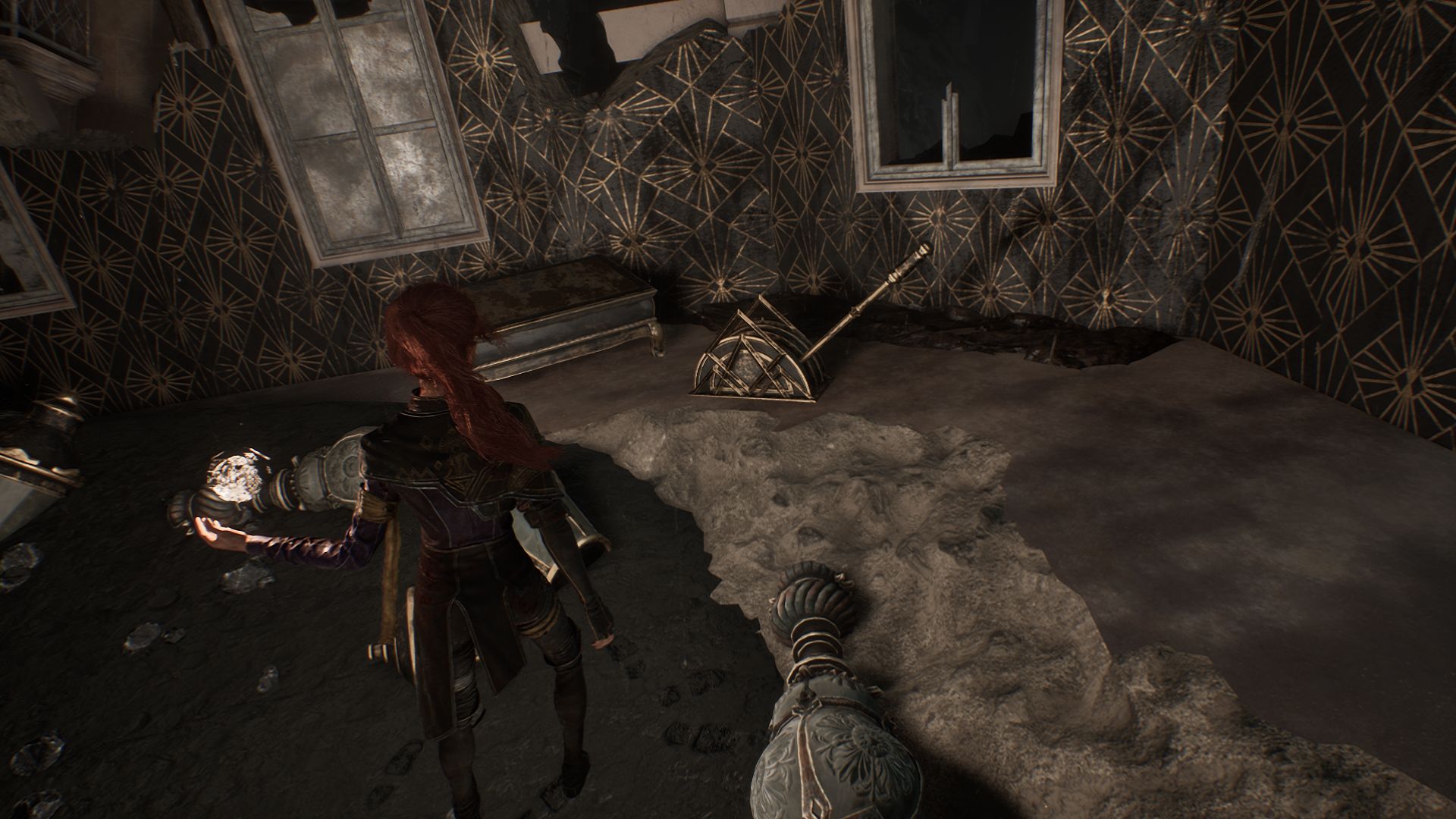 Во второй фазе босс начнет ритуал, связанный с этими же лампами. Следите за порядком их загорания и разрушьте их в том же порядке с помощью навыка «Прицельный выстрел». Это предотвратит использование наиболее опасной атаки — удара мечом.