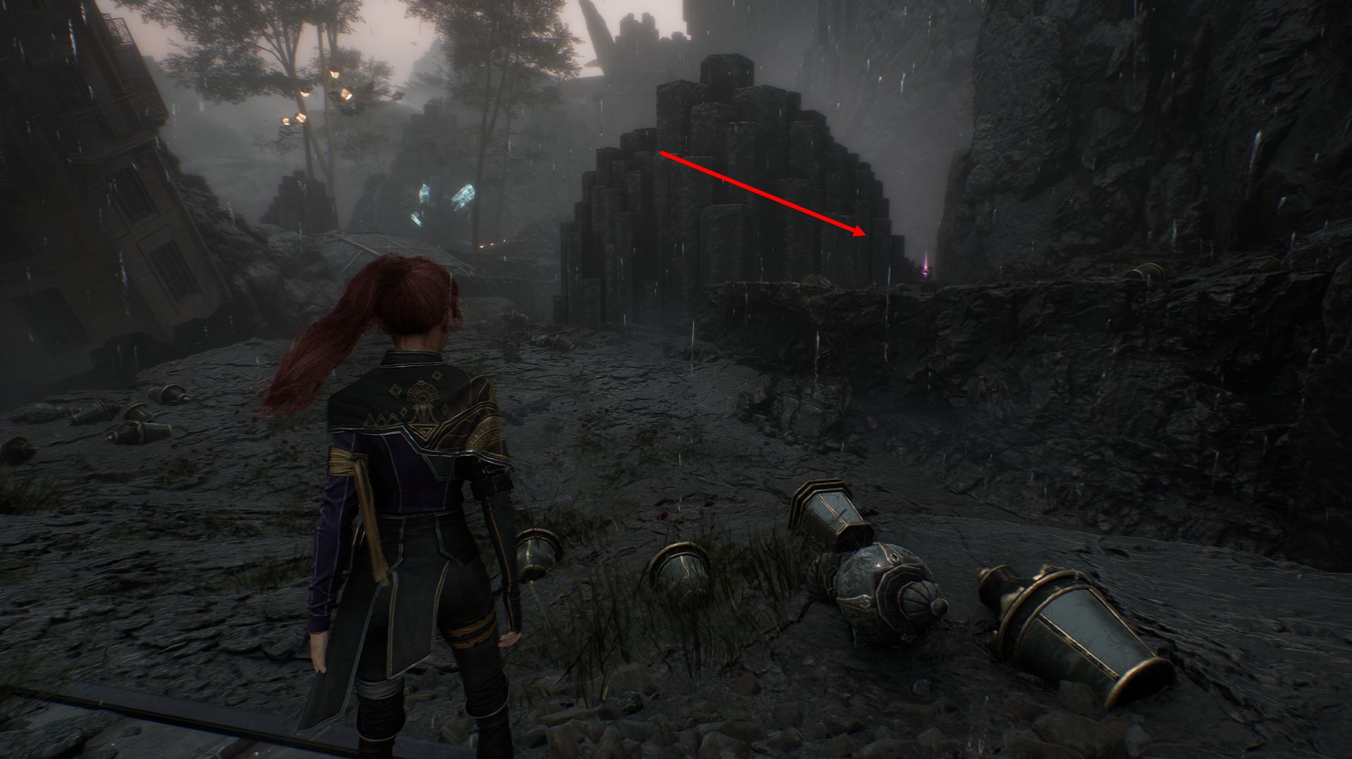 Неподалеку, среди обломков, найдете пиктос «Ломающий контрудар», усиливающий эффект слома при контратаках. Он находится здесь же, слева в огромном кувшине.
